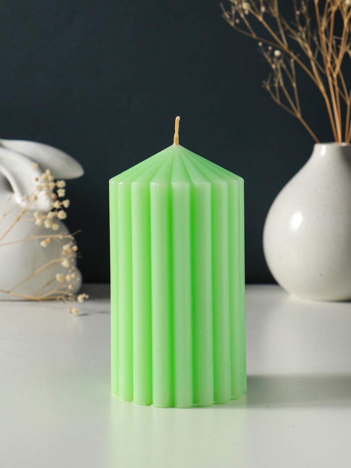 Свеча-цилиндр 7×14 см, 370 г, рифлёная, мята