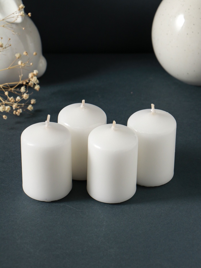 Набор: свеча-цилиндр 4×6 см, 70 г, 4 шт., белый