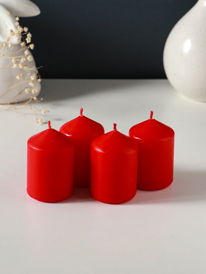 Набор: свеча-цилиндр 4×6 см, 70 г, 4 шт., красный