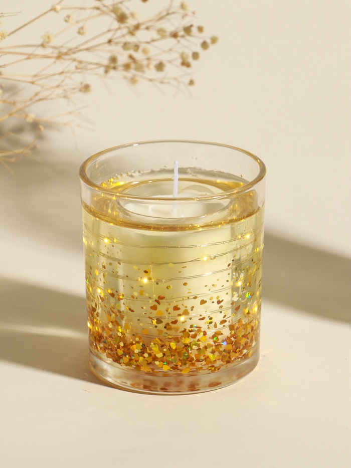 Свеча в стакане с LED-подсветкой «Золотые звёздочки», 8×8×9 см