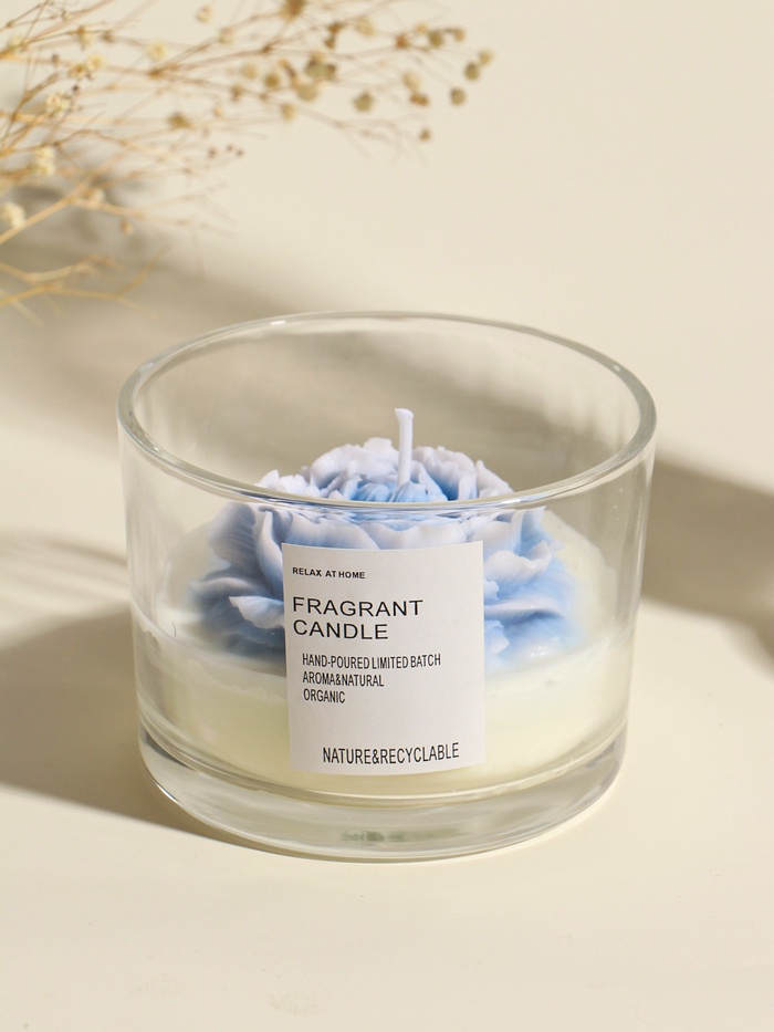 Свеча в стакане «Нежно-голубой пион», 11×11×8 см