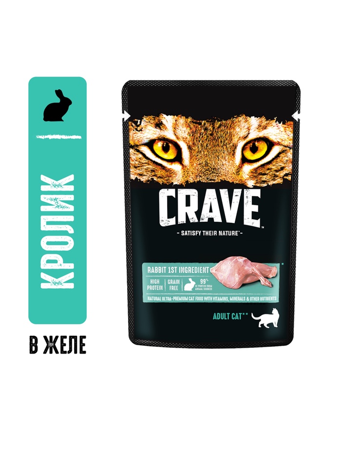 Влажный корм Crave для кошек, пауч кролик в желе 70 г