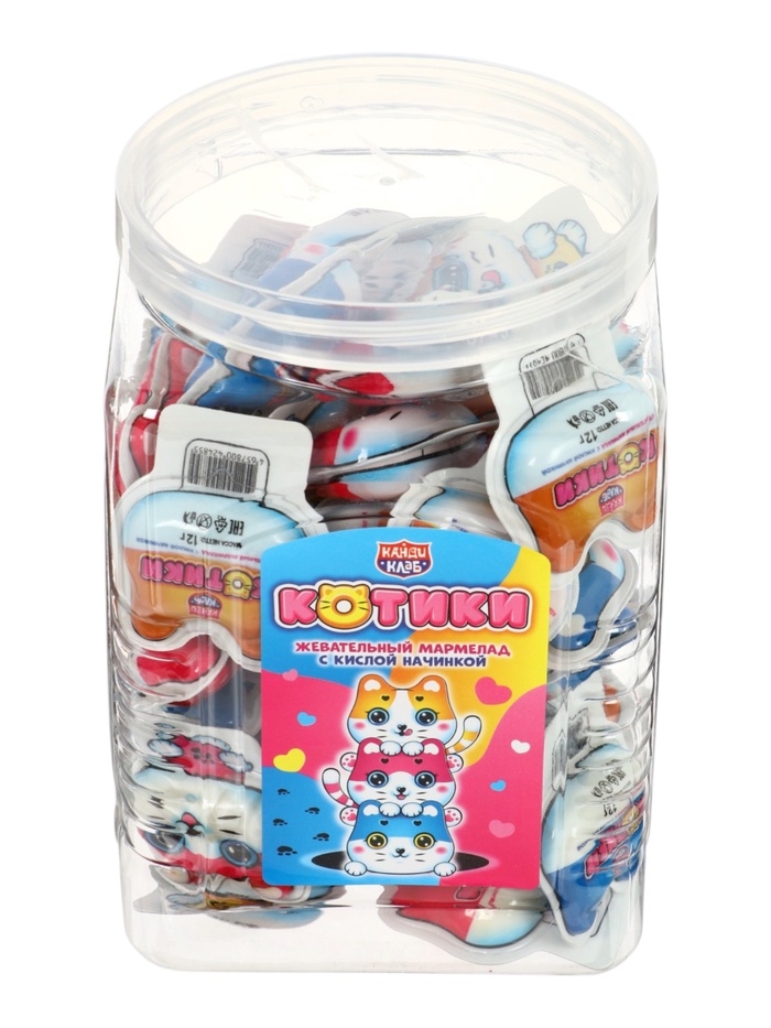 Жевательный мармелад с кислой начинкой "Котики" 12гр