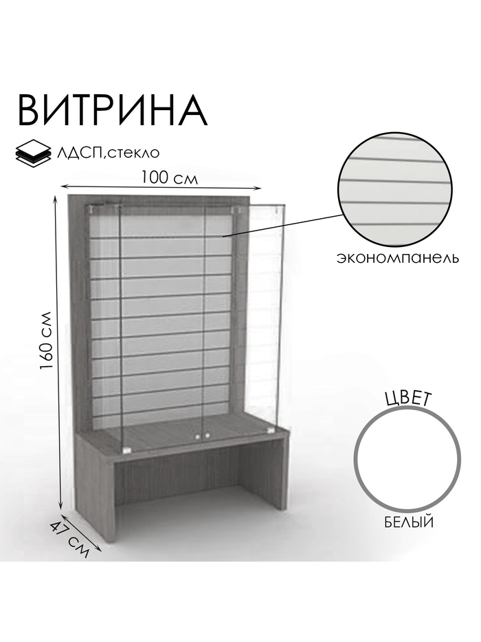 Витрина закрытая с экономпанелью, 100×47×160, ЛДСП, стекло, белая