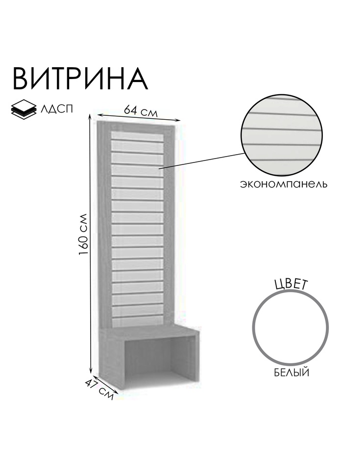 Витрина открытая с экономпанелью, 640×470×1600, ЛДСП, белая