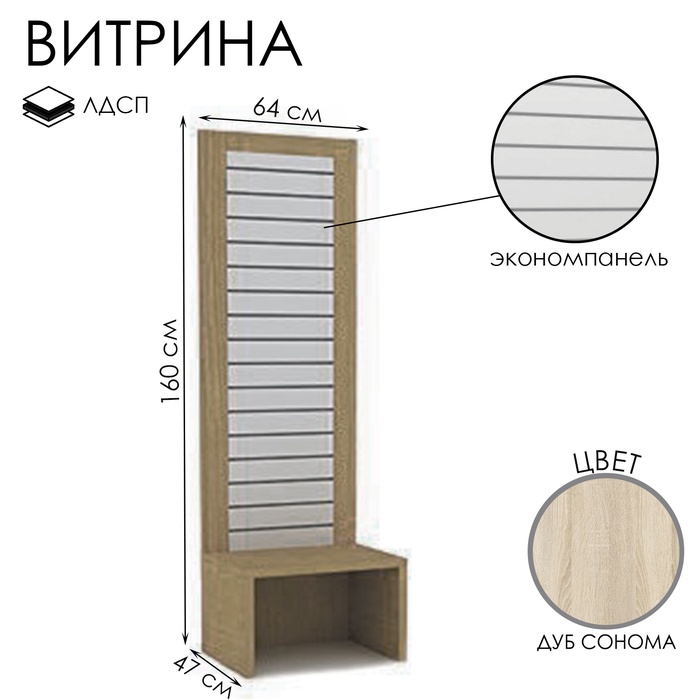 Витрина открытая с экономпанелью, 640×470×1600, ЛДСП, цвет дуб сонома