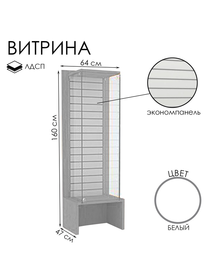 Витрина закрытая с экономпанелью, 64×47×160, ЛДСП, стекло, белая