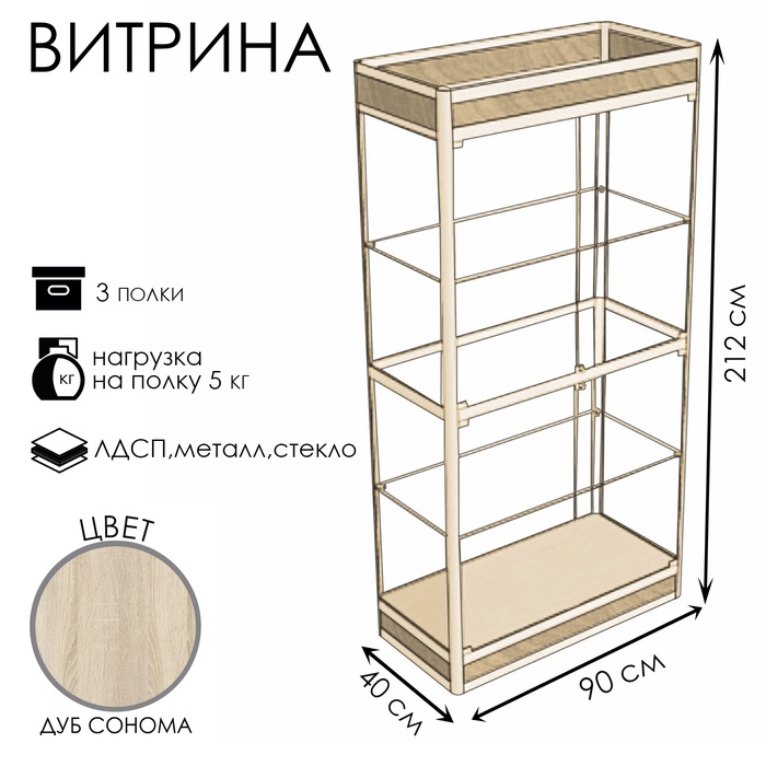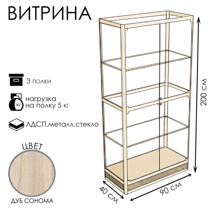 Витрина «П1п», 900×400×2000 мм, ЛДСП, стекло, цвет дуб сонома