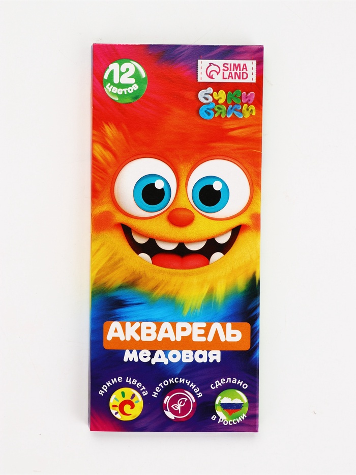 Акварель 12 цветов, упаковка картон "Монстрик"
