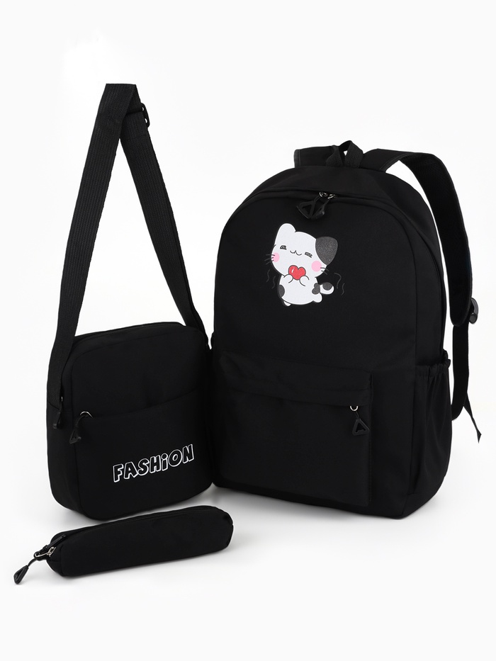 Рюкзак 31*12*44 см (3в1) 1 отд. 3 н/карм+сумка+пенал, Кот. черн.