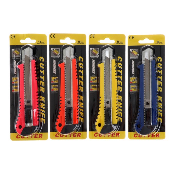 Нож канцелярский 18 мм корпус, чёрное лезвие, МИКС