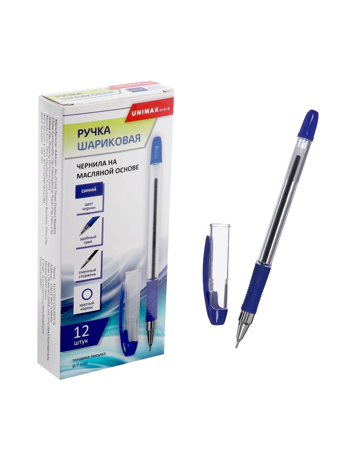 Ручка шариковая синияя 0,7мм, с резиновым держателем Пилот
