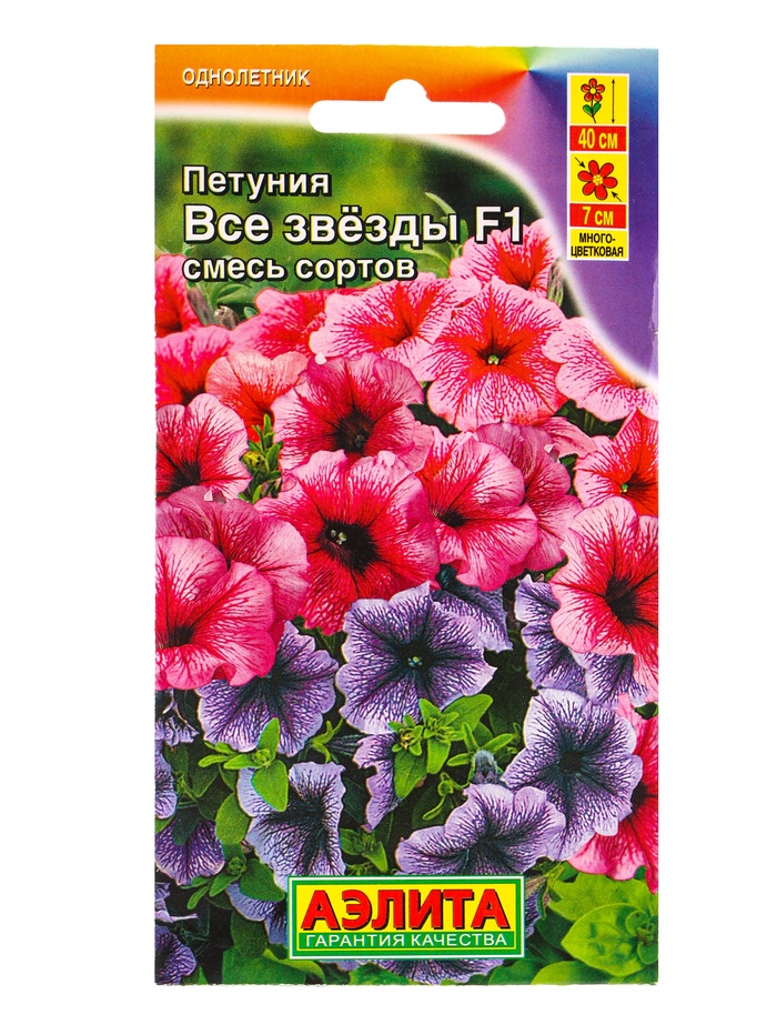 Семена цветов Петуния Все звезды F1 многоцветковая, смесь сортов (драже в пробирке), Ц/П,7 шт. 1094