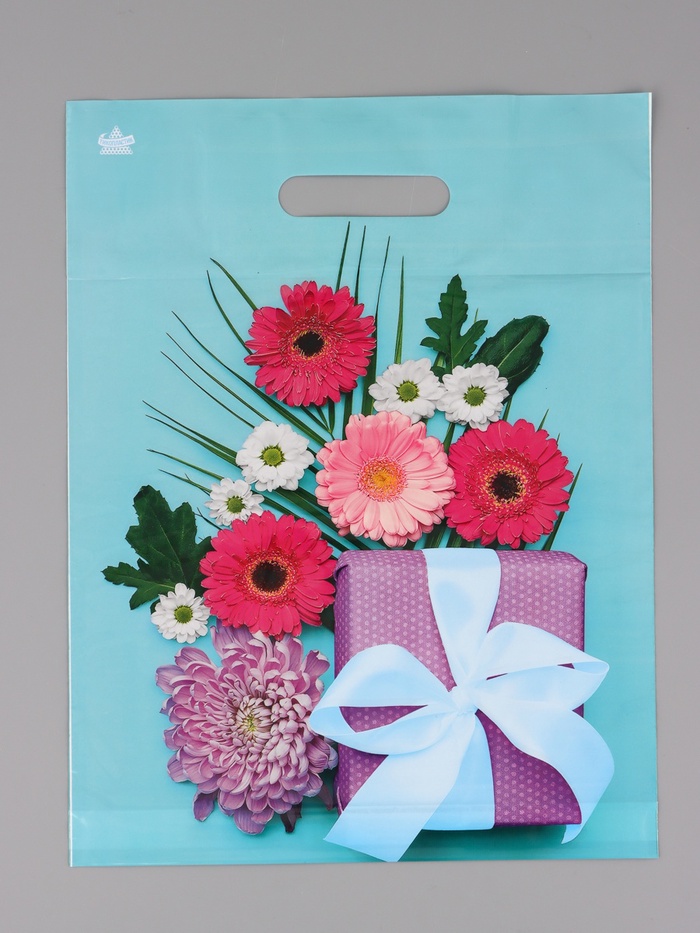 Пакет подарочный полиэтиленовый с вырубной ручкой «Подарочная композиция» 40×31 см, 60 мкм