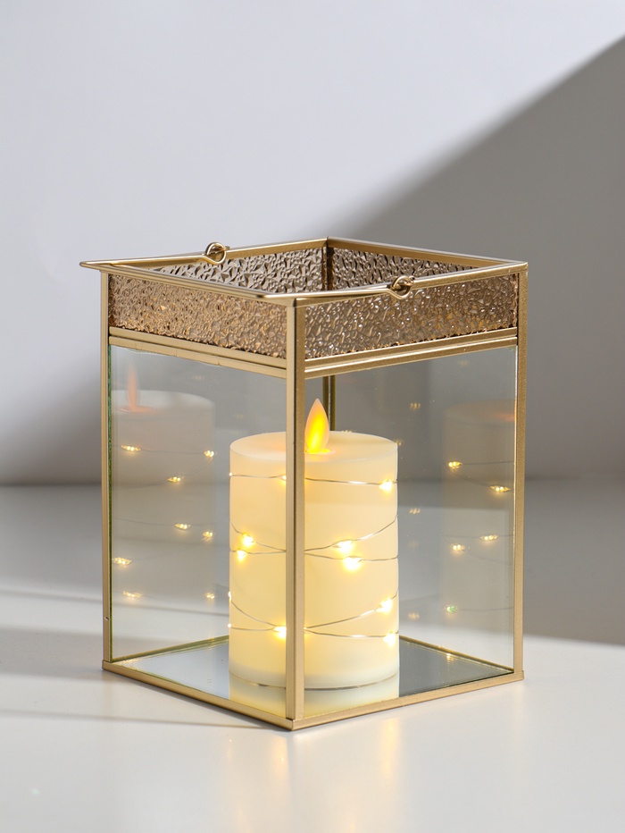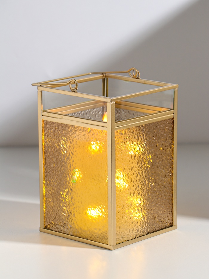 Подсвечник - фонарь «Капли сверху», с ручкой, стекло, металл под золото, 13.5×13.5×19 см