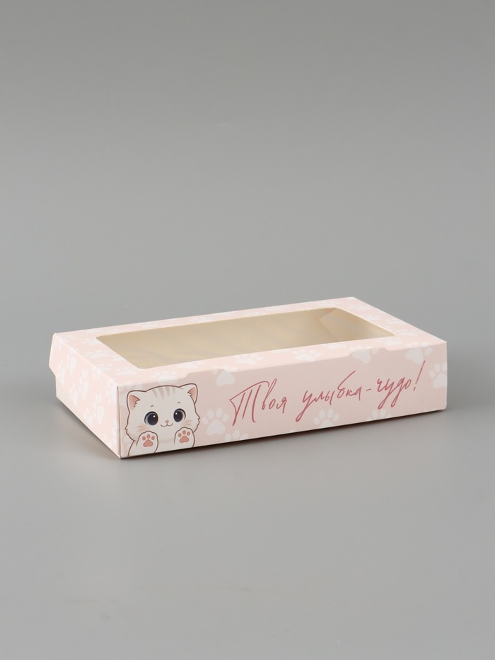 Коробка подарочная с окном «Твоя улыбка — чудо!», 20×12×4 см, самосборная