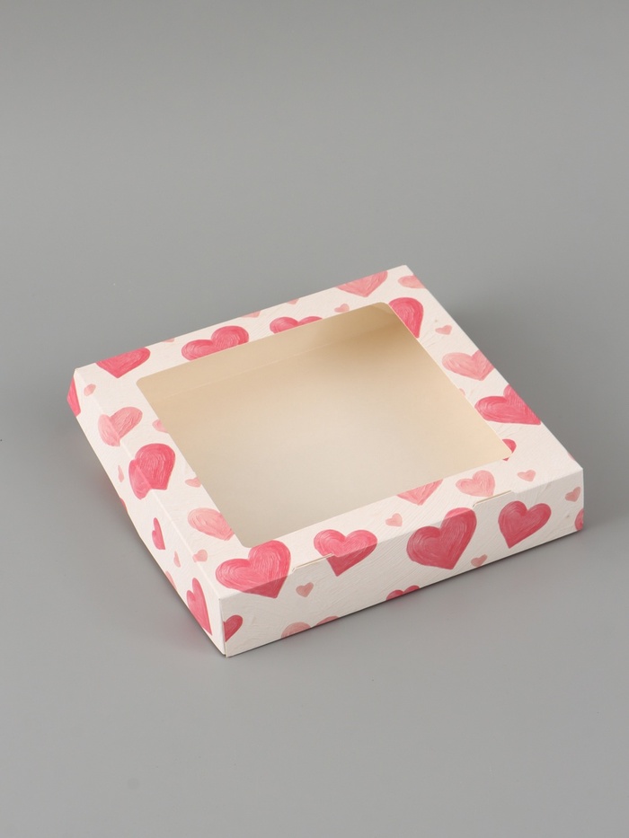 Коробка подарочная с окном «Воздушные сердца», 20×20×4 см, самосборная