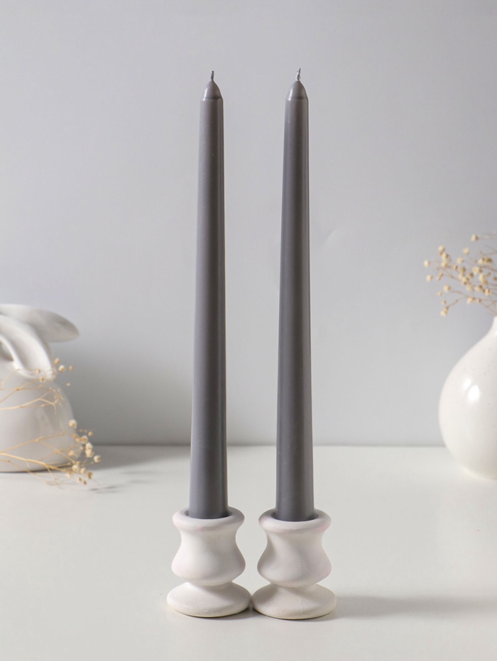 Свеча античная 25 см (набор 2 шт) 58 гр, 7 ч, цв. серый