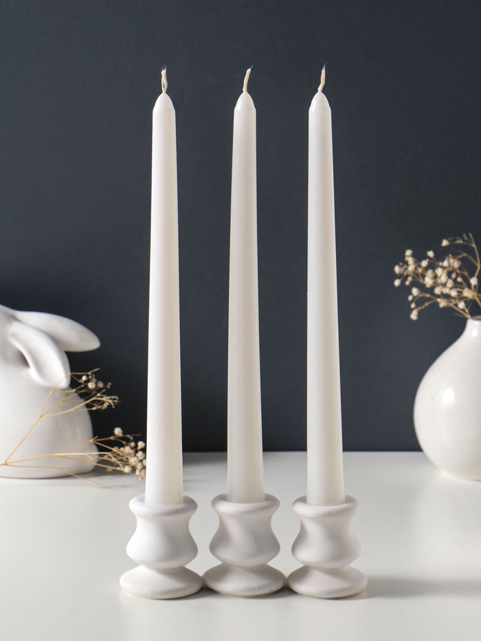 Свеча античная 25 см (набор 3 шт) 58 гр, 7 ч, цв. белый