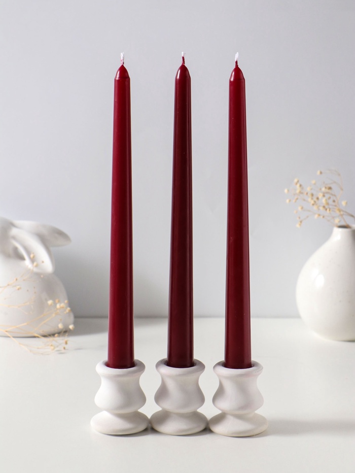 Свеча античная 25 см (набор 3 шт) 58 гр, 7 ч, цв. бордовый