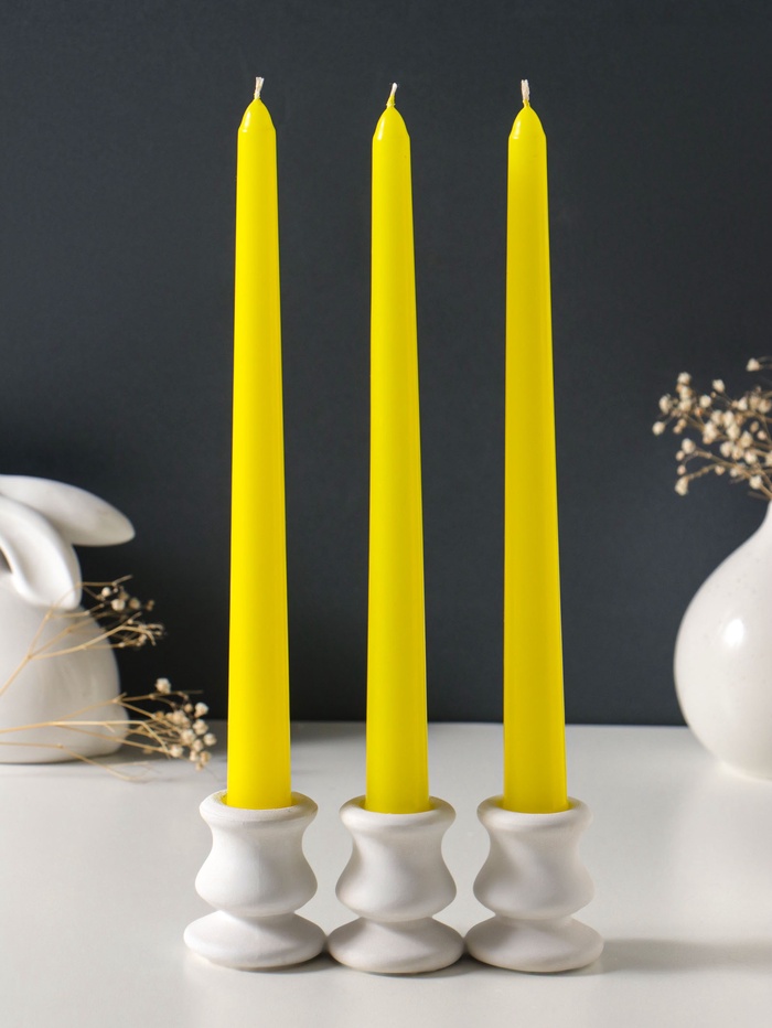 Свеча античная 25 см (набор 3 шт) 58 гр, 7 ч, цв. жёлтый
