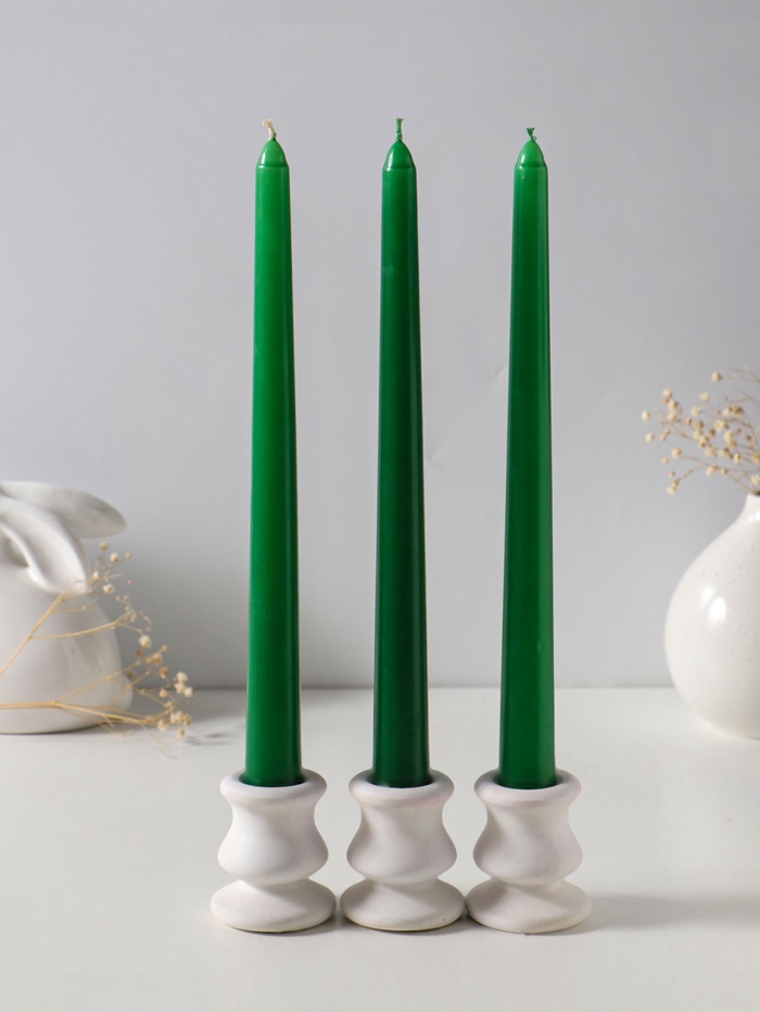 Свеча античная 25 см (набор 3 шт) 58 гр, 7 ч, цв. зелёный