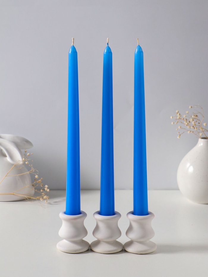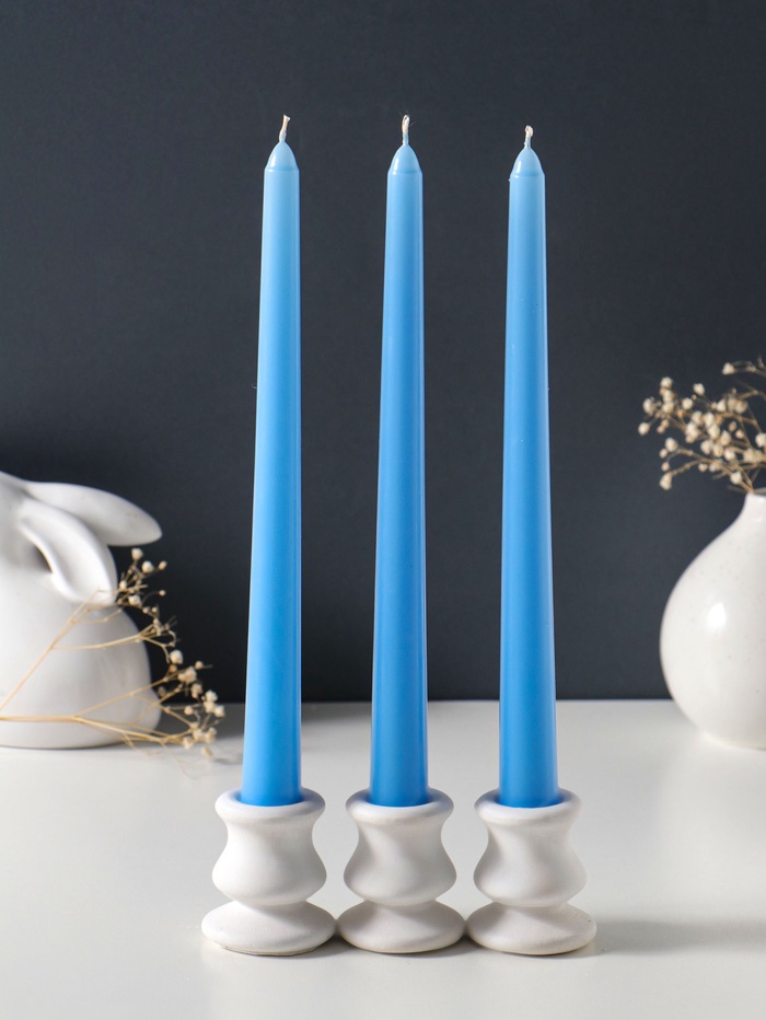 Свеча античная 25 см (набор 3 шт) 58 гр, 7 ч, цв. пастельно-голубой