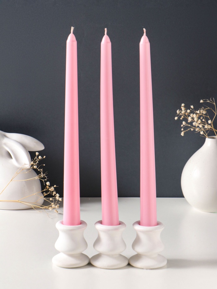 Свеча античная 25 см (набор 3 шт) 58 гр, 7 ч, цв. пастельно-розовый