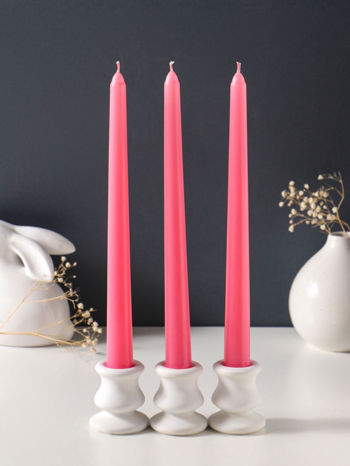 Свеча античная 25 см (набор 3 шт) 58 гр, 7 ч, цв. розовый