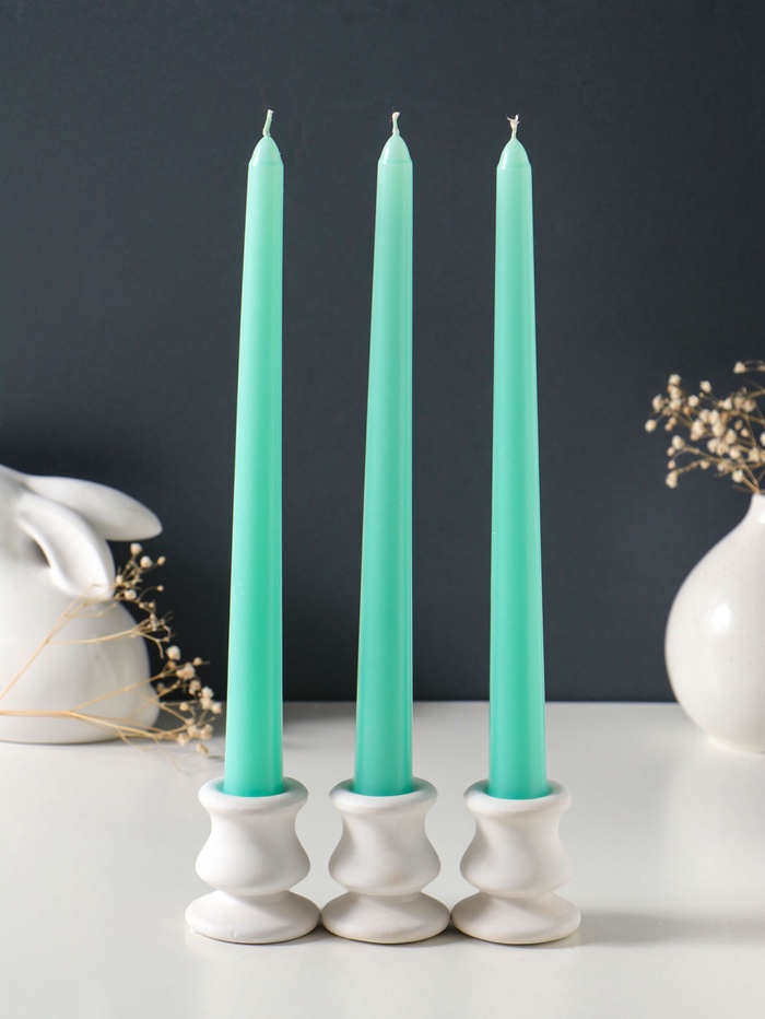 Свеча античная 25 см (набор 3 шт) 58 гр, 7 ч, цв. мятный