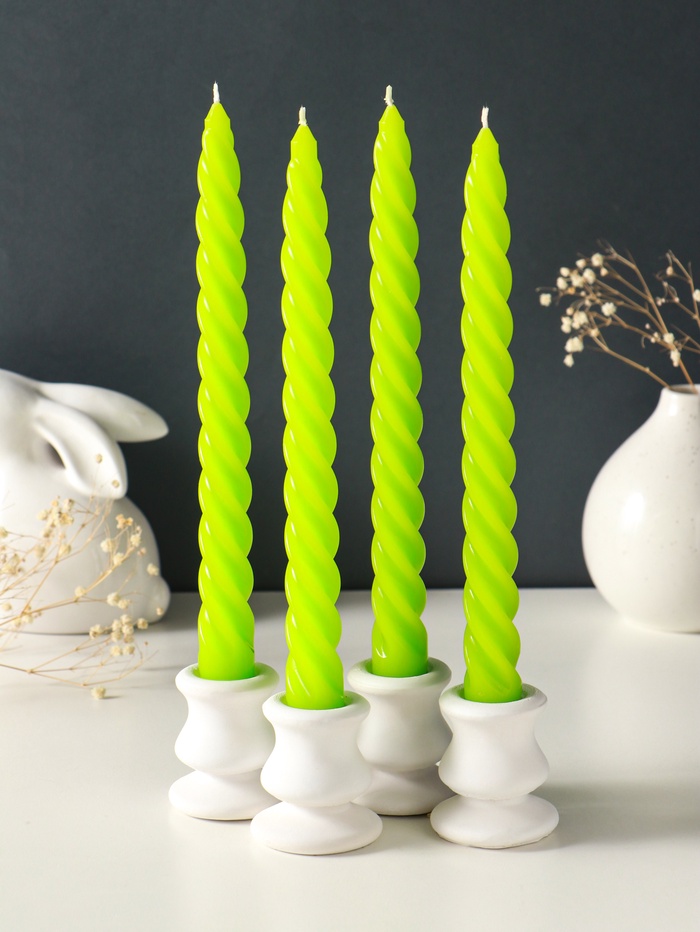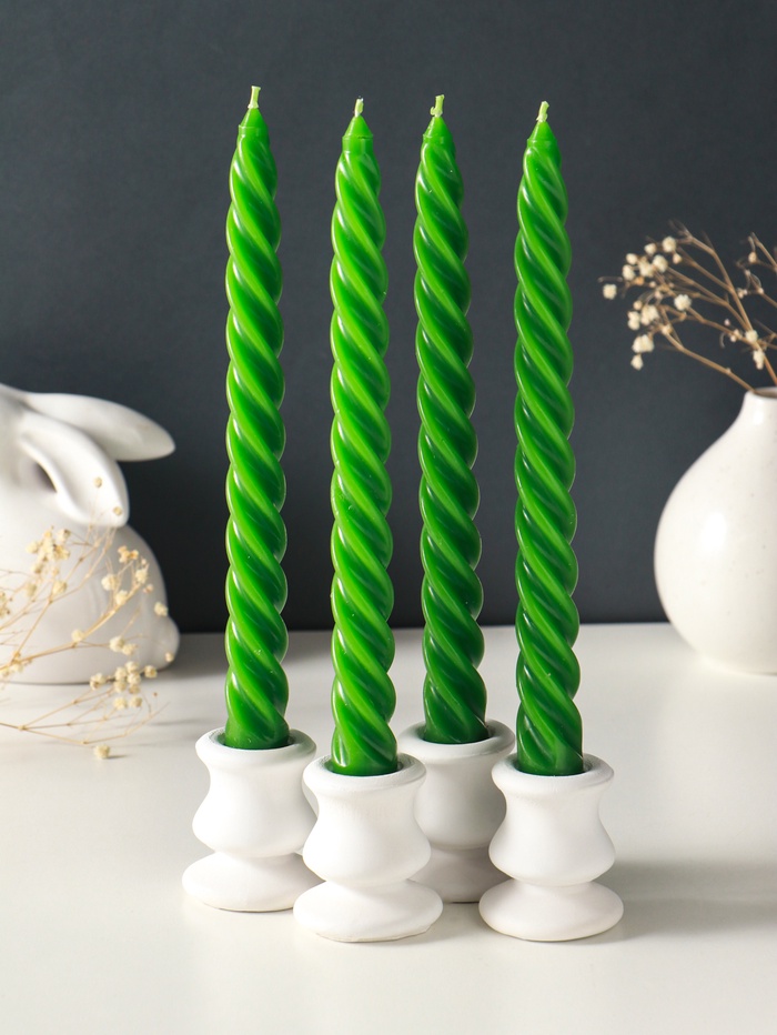 Набор свечей витых, 2.3×24.5 см, 5 ч, 50 г, 4 шт., зелёный