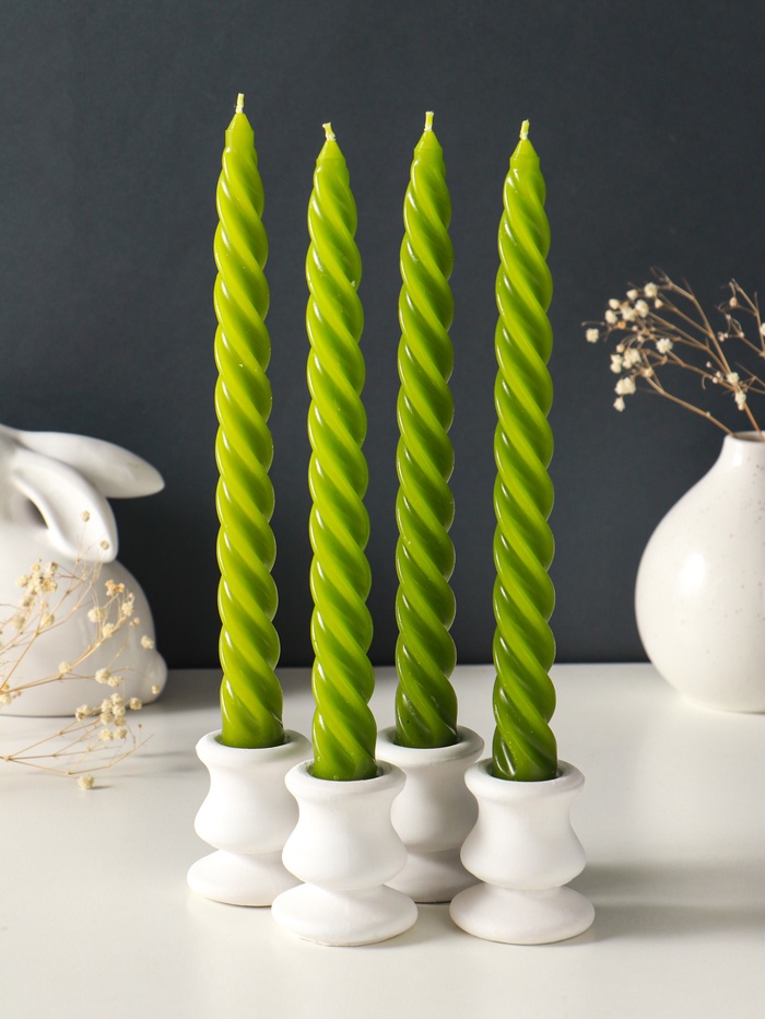 Набор свечей витых, 2.3×24.5 см, 5 ч, 50 г, 4 шт., оливковый