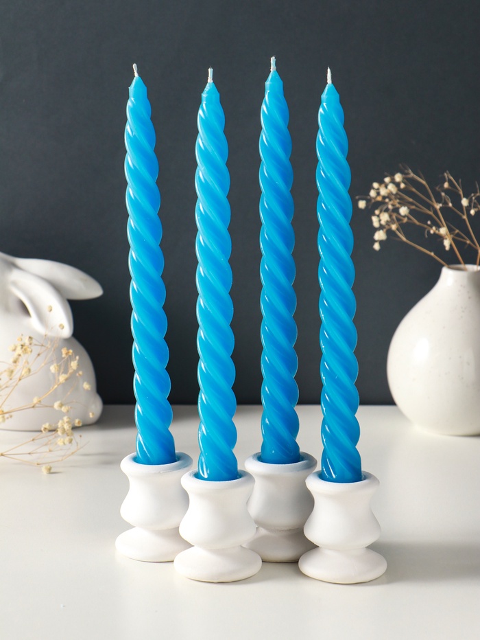 Набор свечей витых, 2.3×24.5 см, 5 ч, 50 г, 4 шт., синий