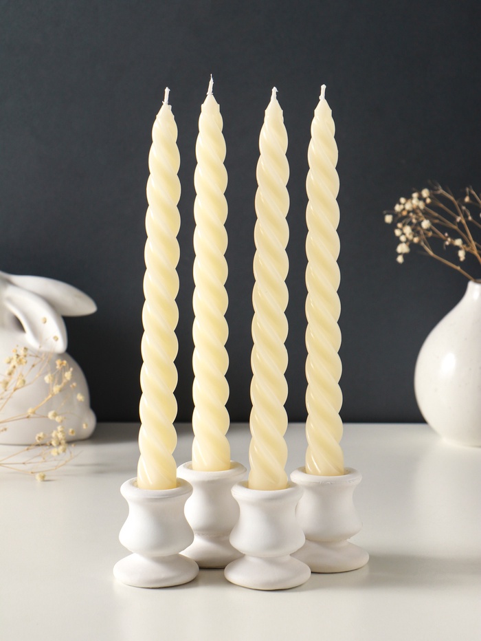 Набор свечей витых, 2.3×24.5 см, 5 ч, 50 г, 4 шт., слоновая кость