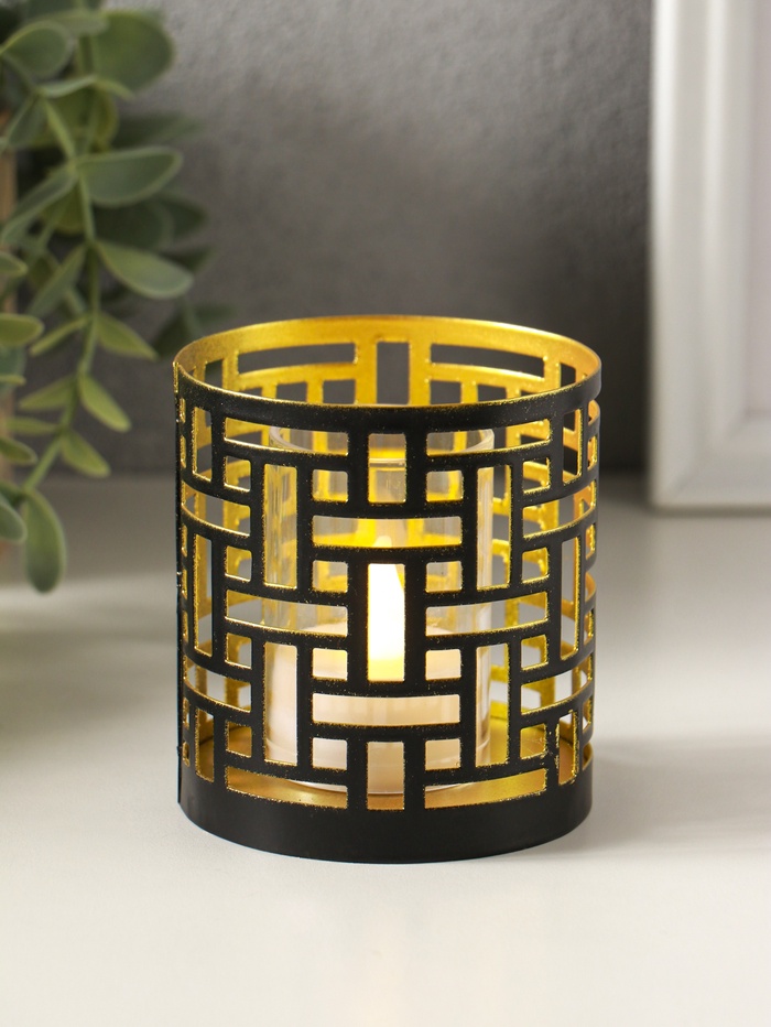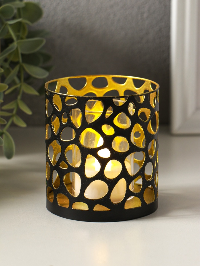 Металлический подсвечник «Цилиндр геометрия», 7.5×7.5×8 см, чёрный с золотом