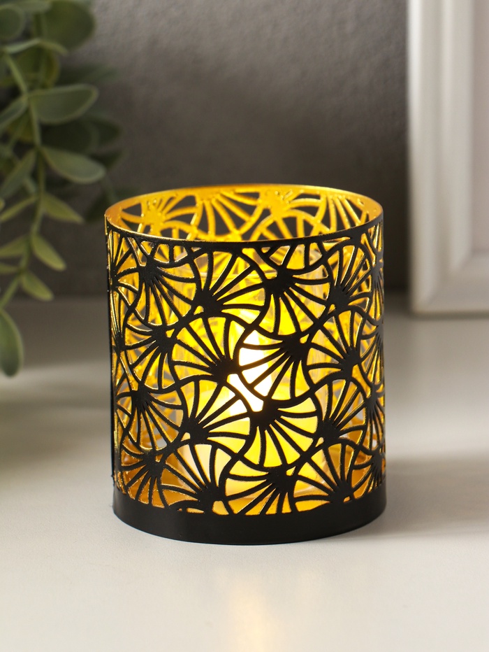 Металлический подсвечник «Цилиндр цветы», 7.5×7.5×8 см, чёрный с золотом