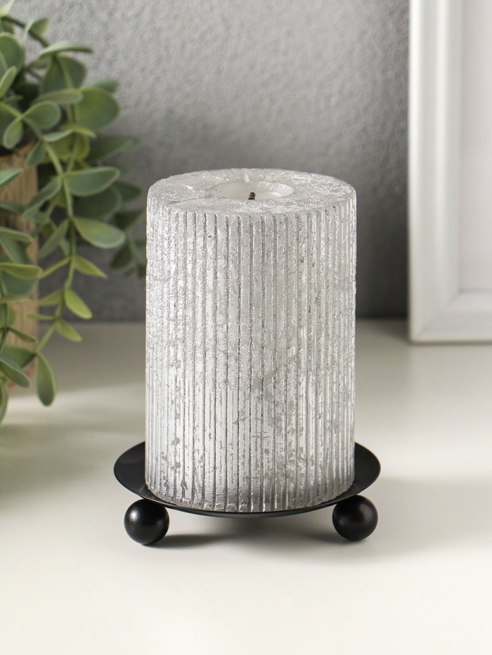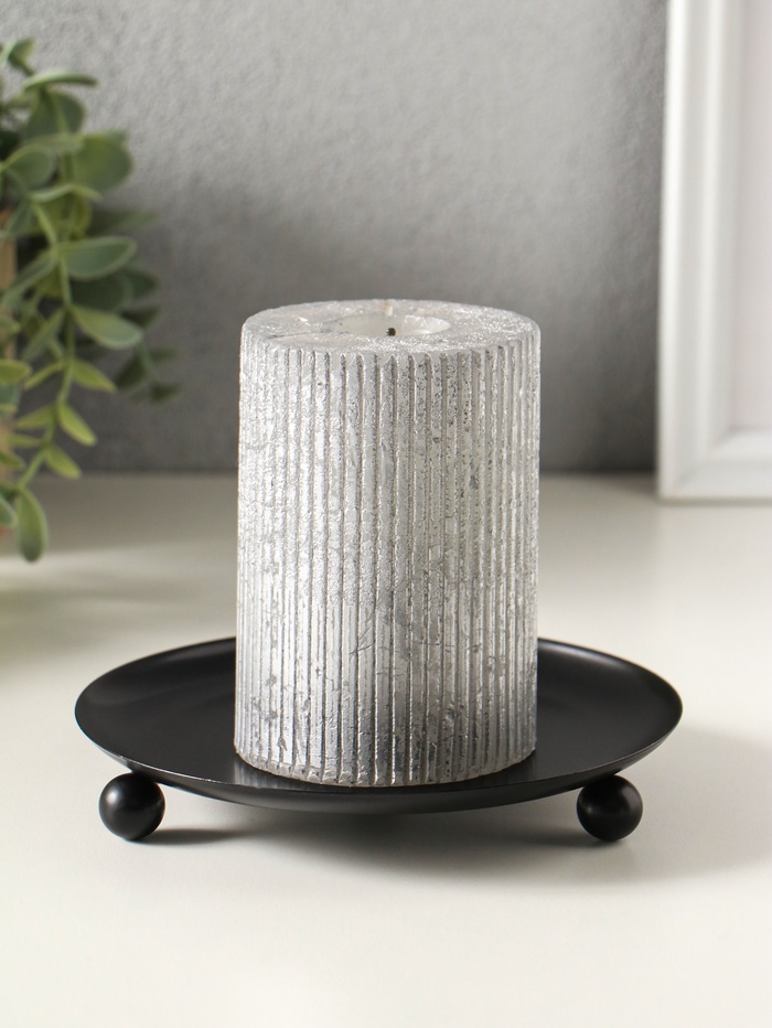 Металлический подсвечник плоский «Чашка на шариках», 9 см, чёрный