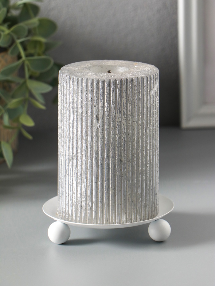 Металлический подсвечник плоский «Чашка на шариках», 14 см, белый
