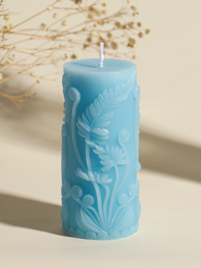 Свеча-цилиндр декоративная «Столбик. Экзотические растения», нежно-голубая, 5×5×11.7 см