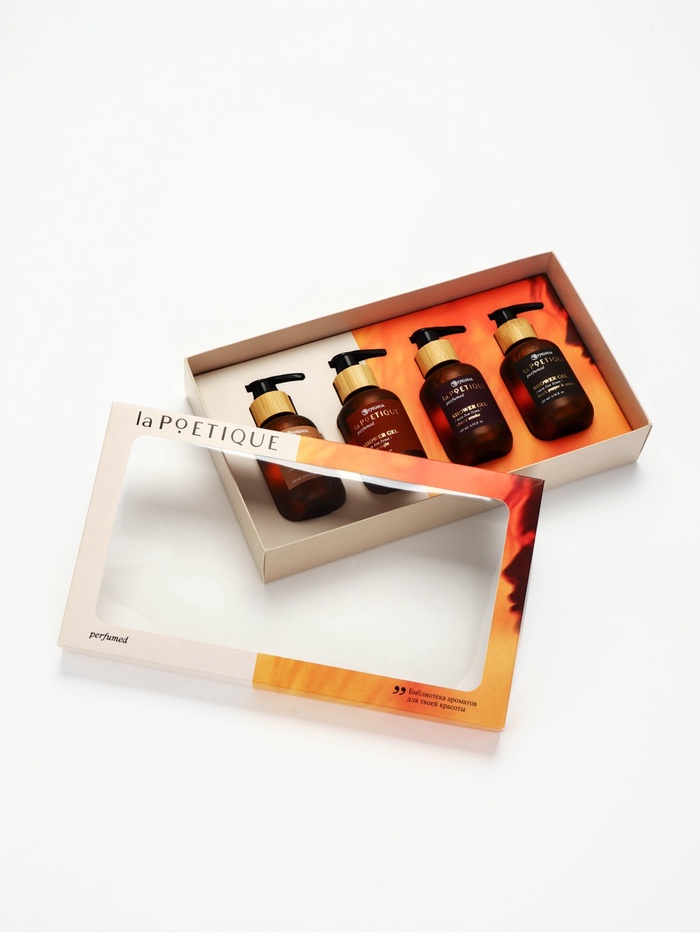 Подарочный набор гель для душа 4×120 мл, по мотивам ароматов султан, перец, ваниль, вишня, POETIQUE