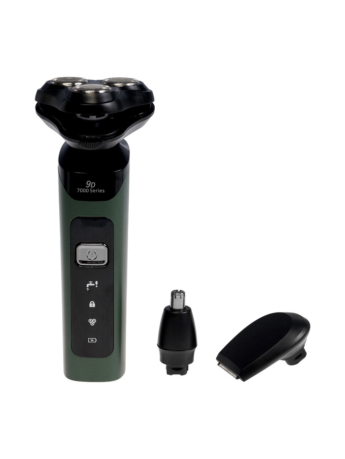 Электробритва LBR-13, роторная, 3 Вт, триммер, 3 головки, сухое бритьё, от АКБ, зелёная