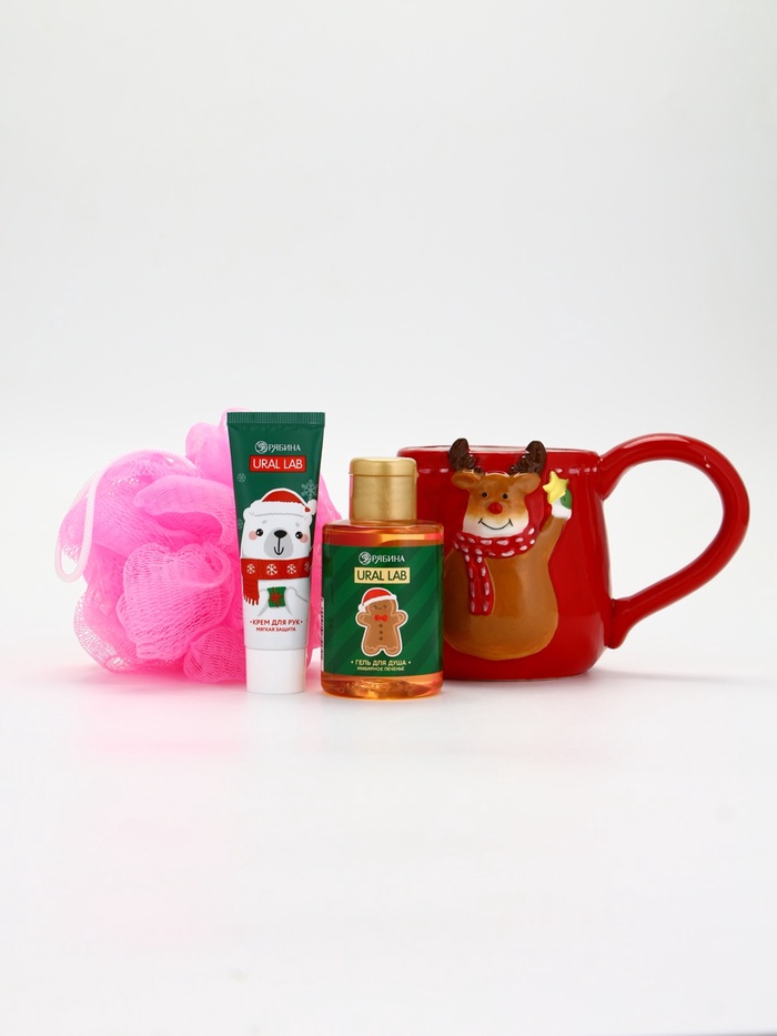 Подарочный набор новогодний «Олень», гель для душа, кружка, мочалка и крем для рук, URAL LAB