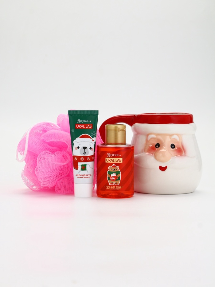 Подарочный набор новогодний «Дед Мороз», гель для душа, кружка, мочалка и крем для рук, URAL LAB