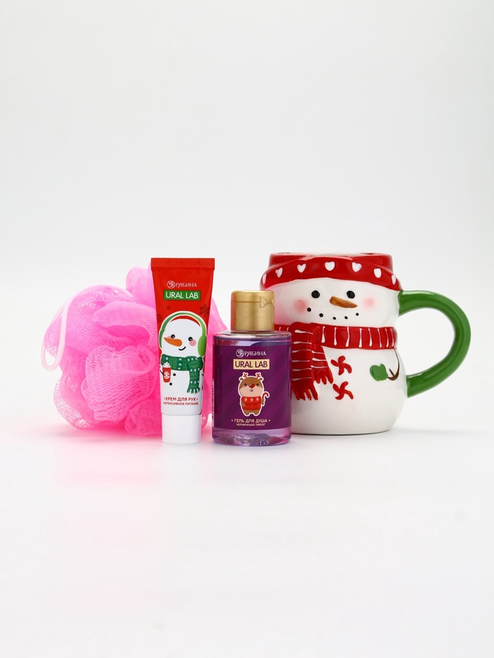 Подарочный набор новогодний «Снеговик», гель для душа, кружка, мочалка и крем для рук, URAL LAB