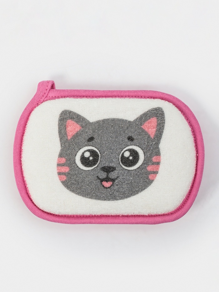 Мочалка для купания "Кошечка", 12х8 см, цвет розовый