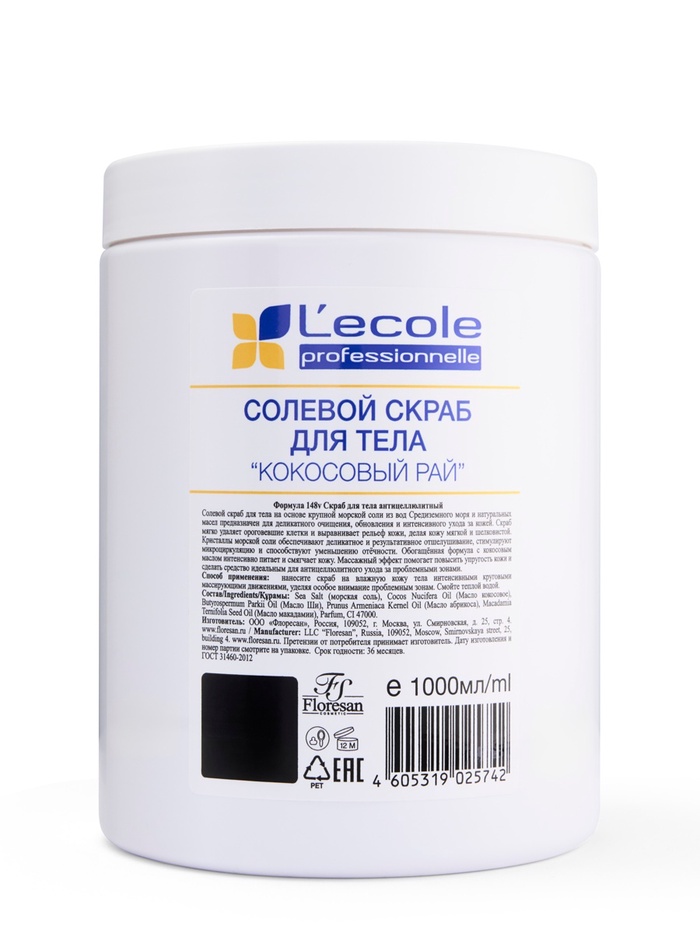Скраб для тела солевой Floresan кокосовый, 1000 г