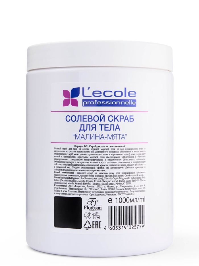 Скраб для тела солевой Floresan малина-мята, 1000 г