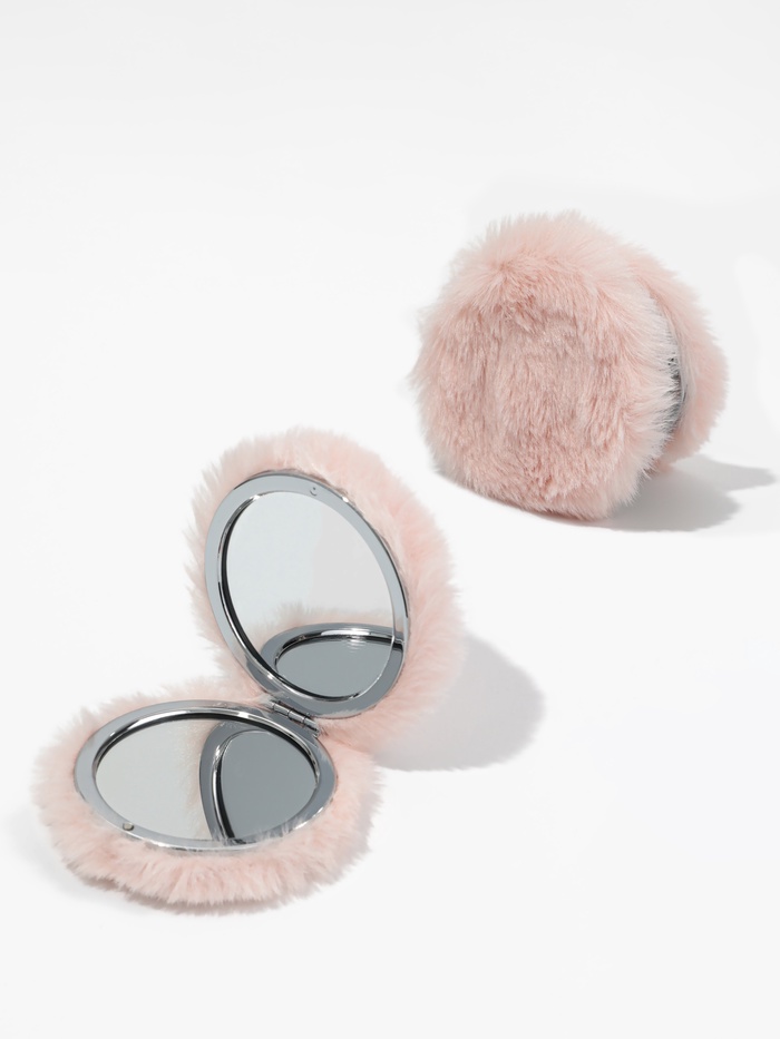 Зеркало складное «Мех», d=8 см, с увеличением, с искусственным мехом, розовое