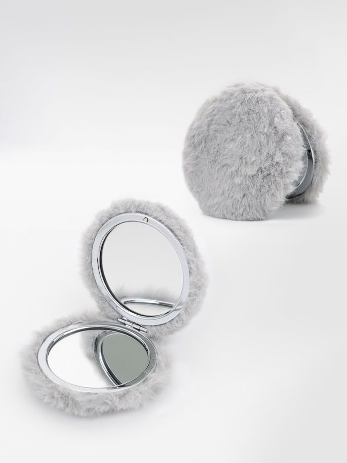 Зеркало складное «Мех», d=8 см, с увеличением, с искусственным мехом, серое