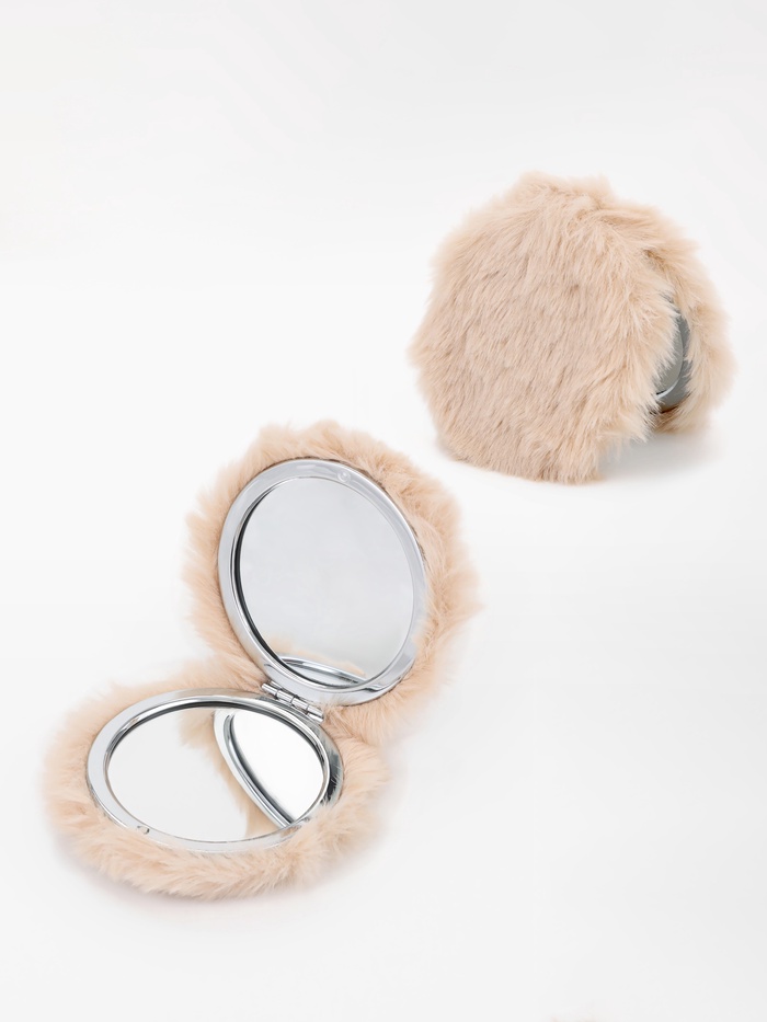 Зеркало складное «Мех», d=8 см, с увеличением, с искусственным мехом, бежевое